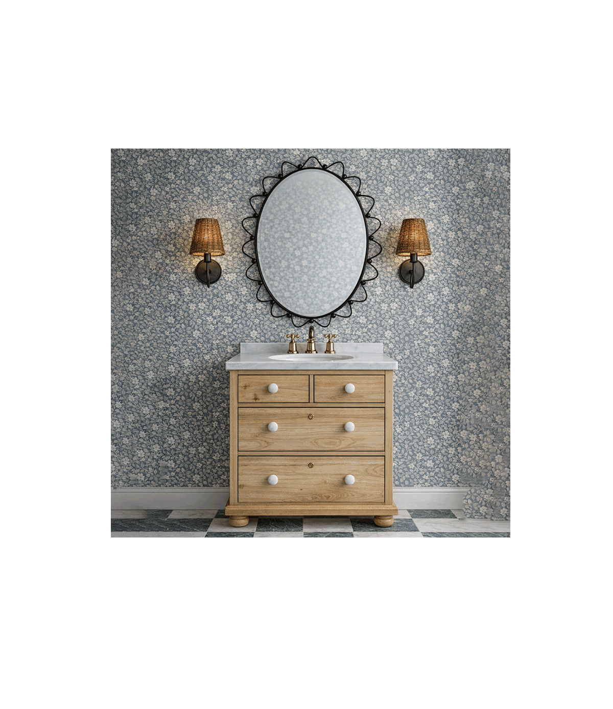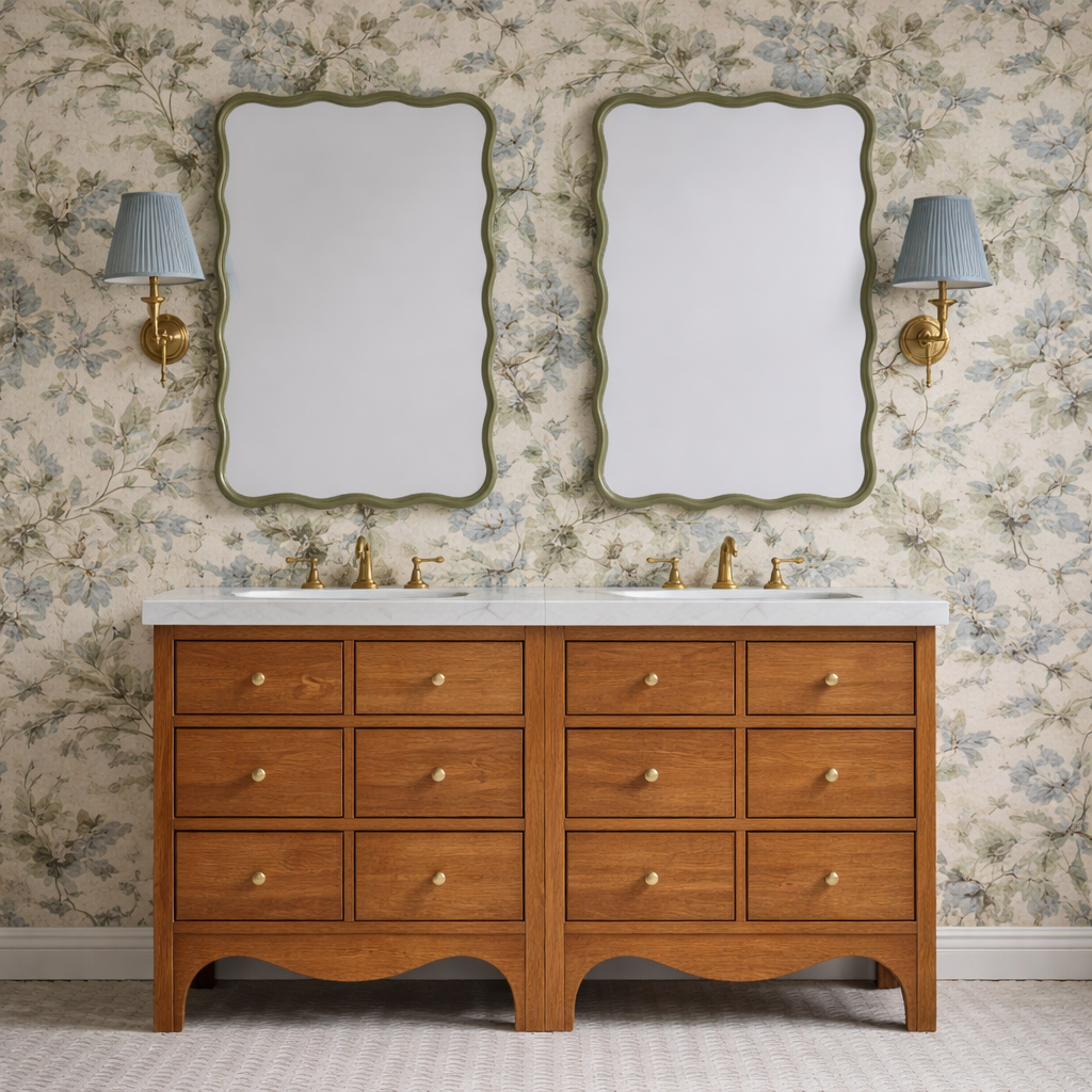 Our mirrors, lighting, and vanity stools feel curated, not coordinated.