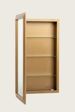 Refined and understated, the Audrey Medicine Cabinet offers a timeless interpretation of classic design. Its clean rectangular form is framed by softly stepped molding, creating subtle depth and architectural interest without ornamentation. Finished in a light, silvery or gold tone, Audrey brings a fresh, tailored feel to the space while seamlessly concealing practical storage behind the mirror. Ideal for bathrooms that favor quiet elegance, this cabinet pairs beautifully with both traditional and contemporary interiors.