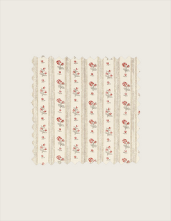 Cabanon Stripe showcases a naive floral motif among narrow banded stripes. This charming small-scale pattern has the look of a hand-printed textile.