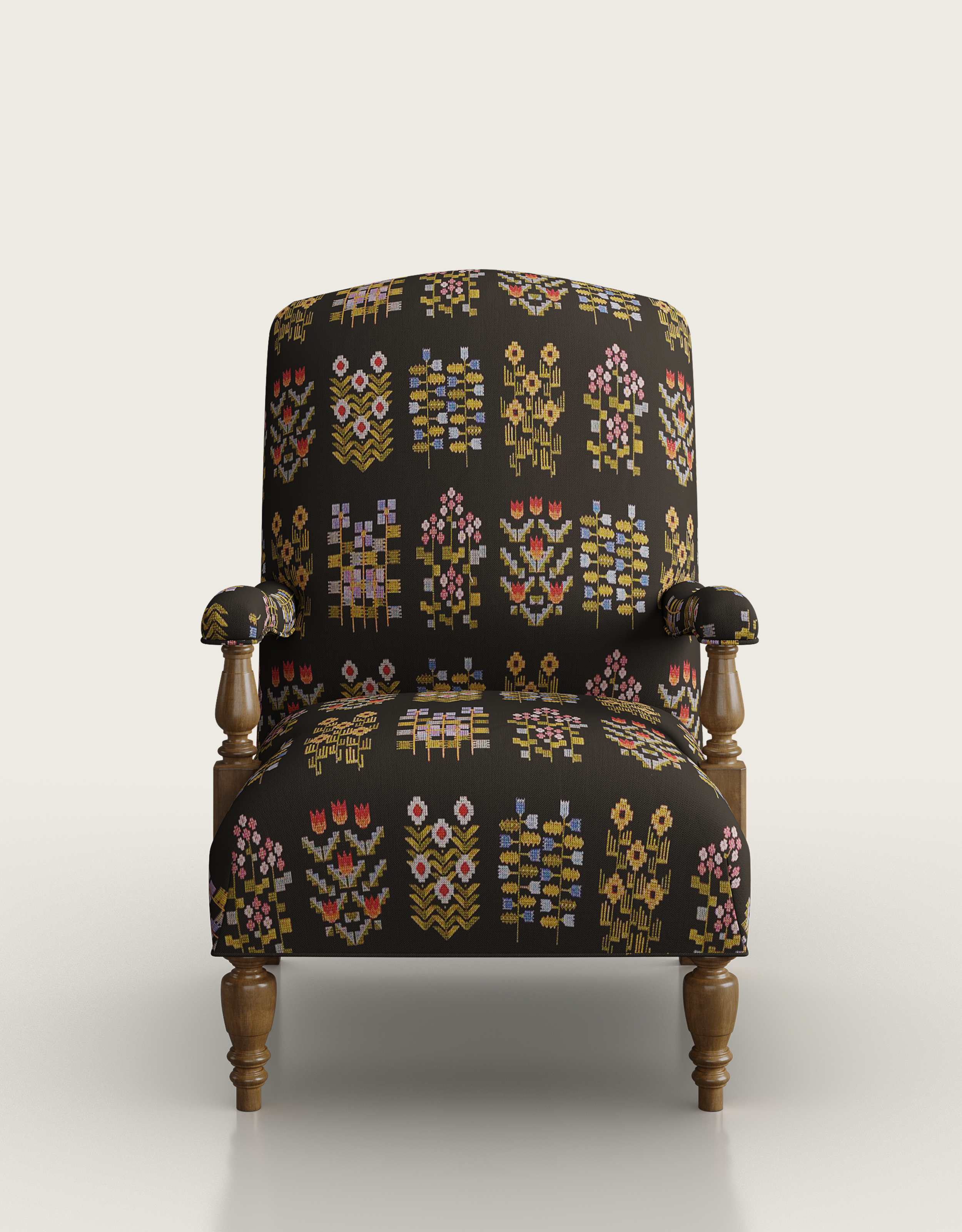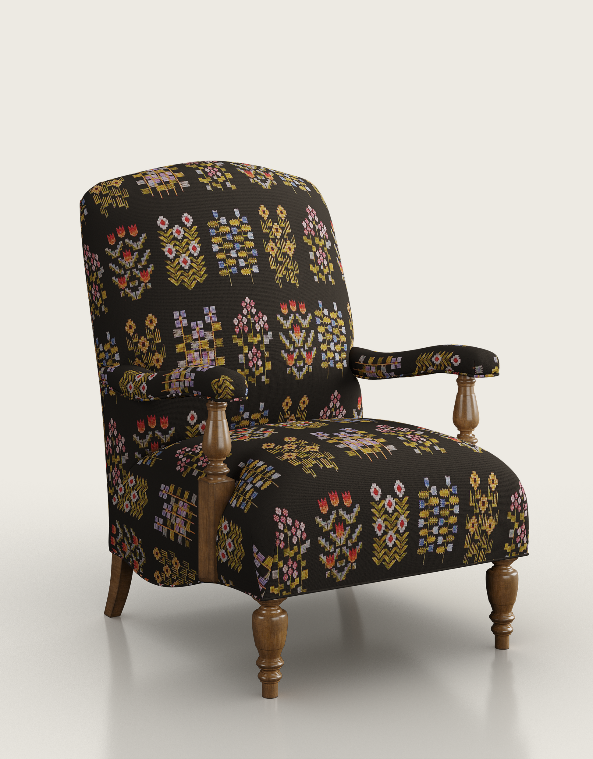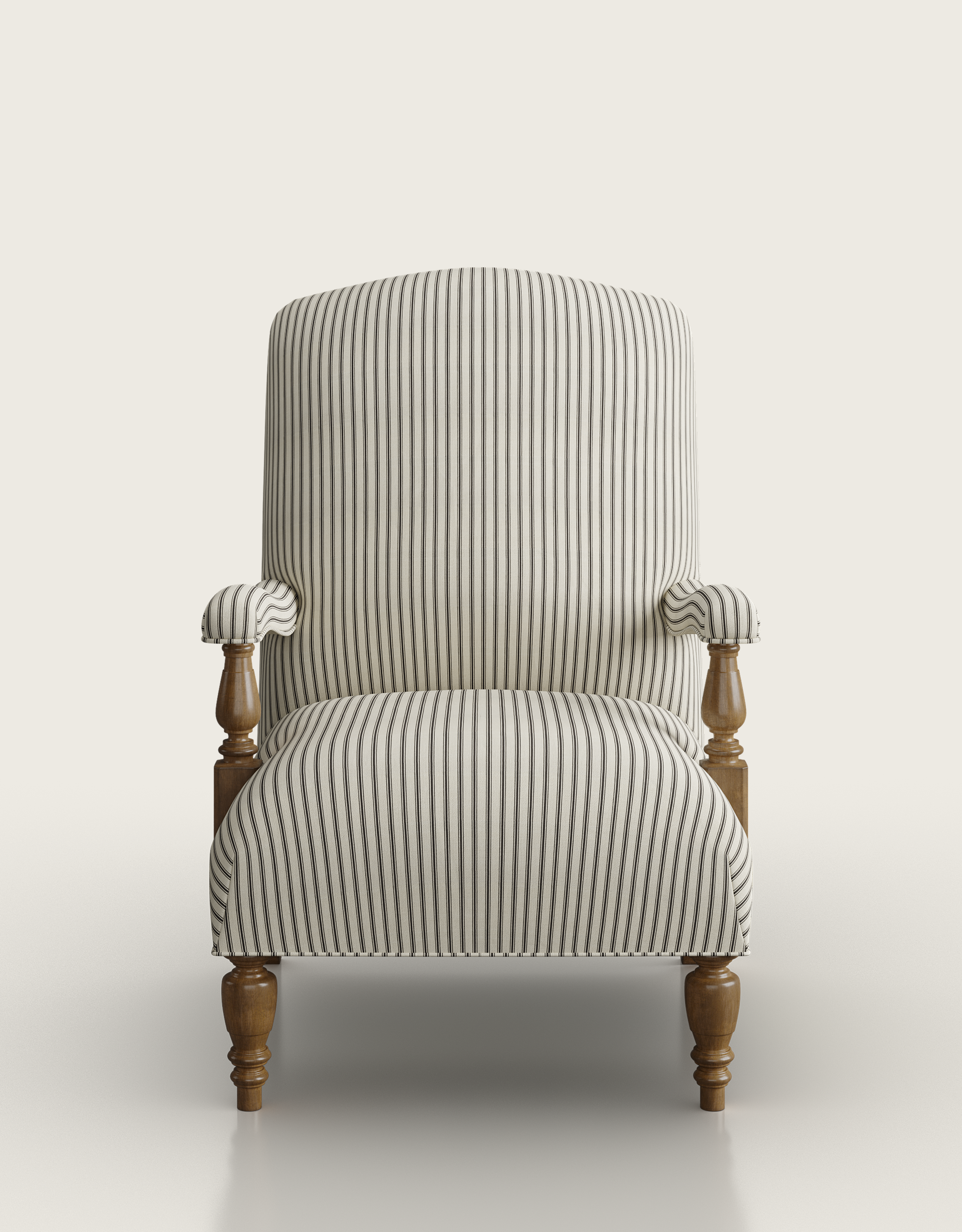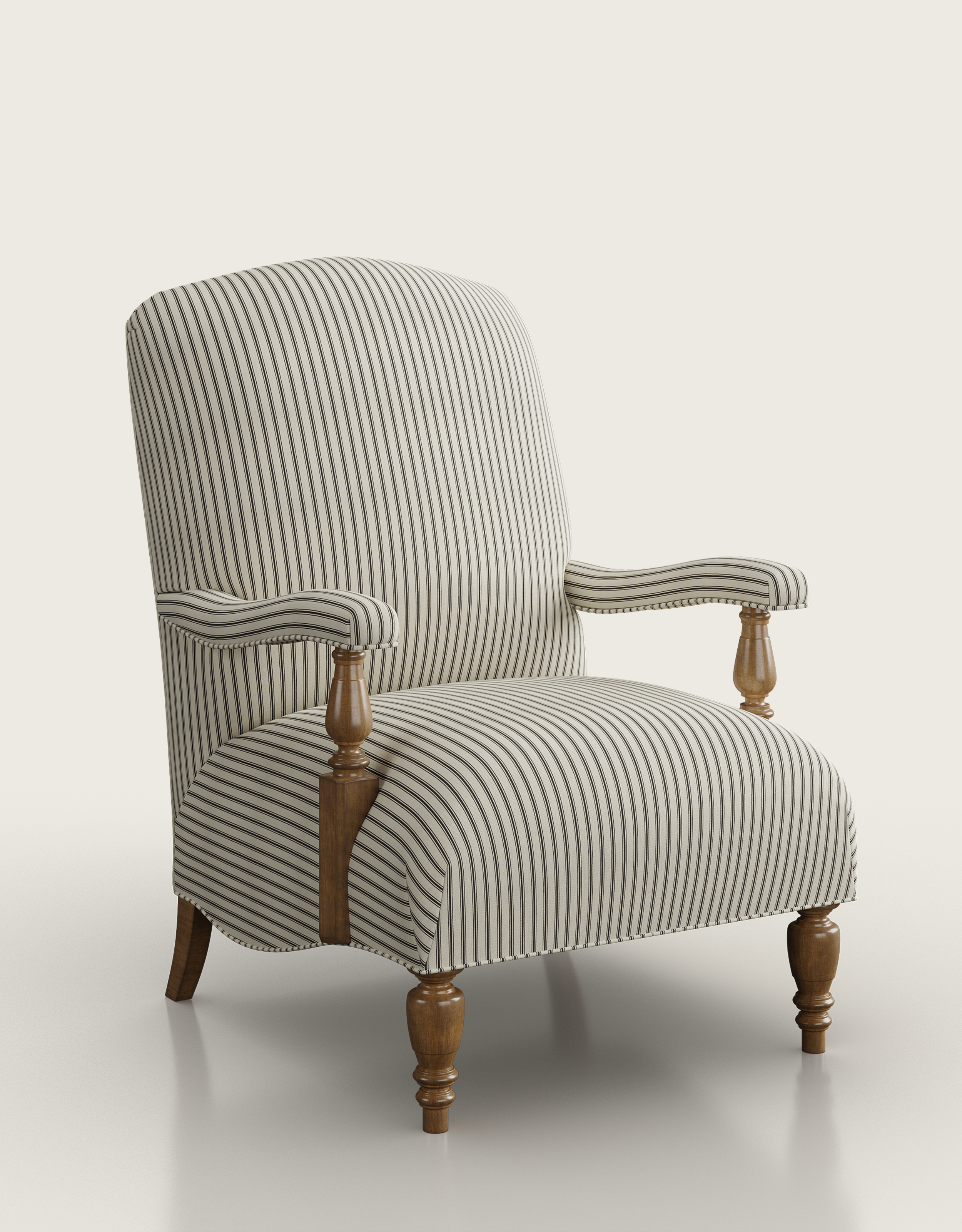 With its graceful profile and hand-turned legs, the Clara Annika Side Chair brings heritage charm and tailored comfort to any interior. The generous seat and gently arched back provide an inviting silhouette, while the scrolled arms and solid wood frame highlight traditional craftsmanship. Perfect as an accent chair in a sitting room, bedroom, or reading nook, Clara blends timeless form with refined detailing for a look that feels both classic and personal.