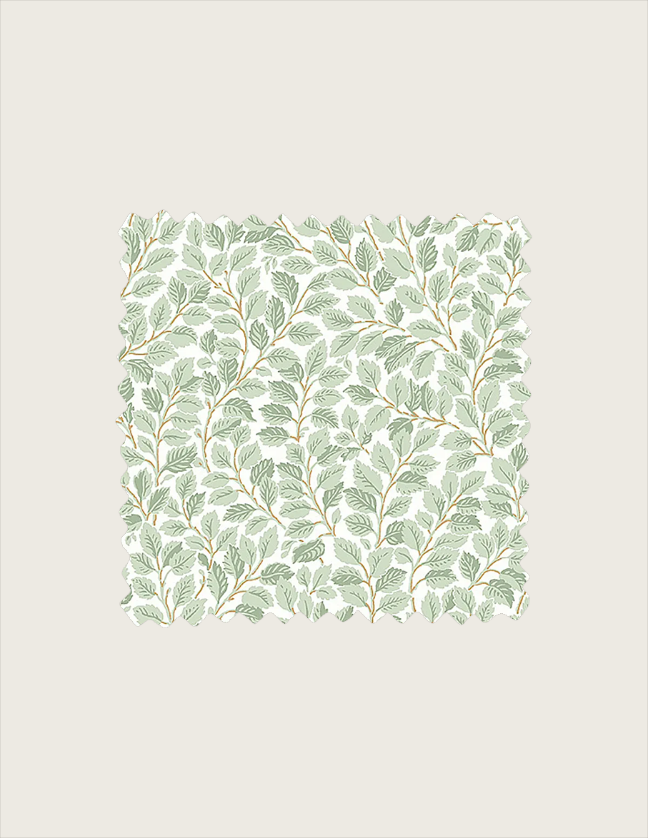 An intricate pattern of winding hazel leaves highlights Boråstapeter’s Hazel wallpaper in spruce. The beautiful botanical pattern creates a soft, stylish and soothing background suitable for all schemes, from a nursery to a kitchen. This product is FSC Certified. Available in North America exclusively through Schumacher.