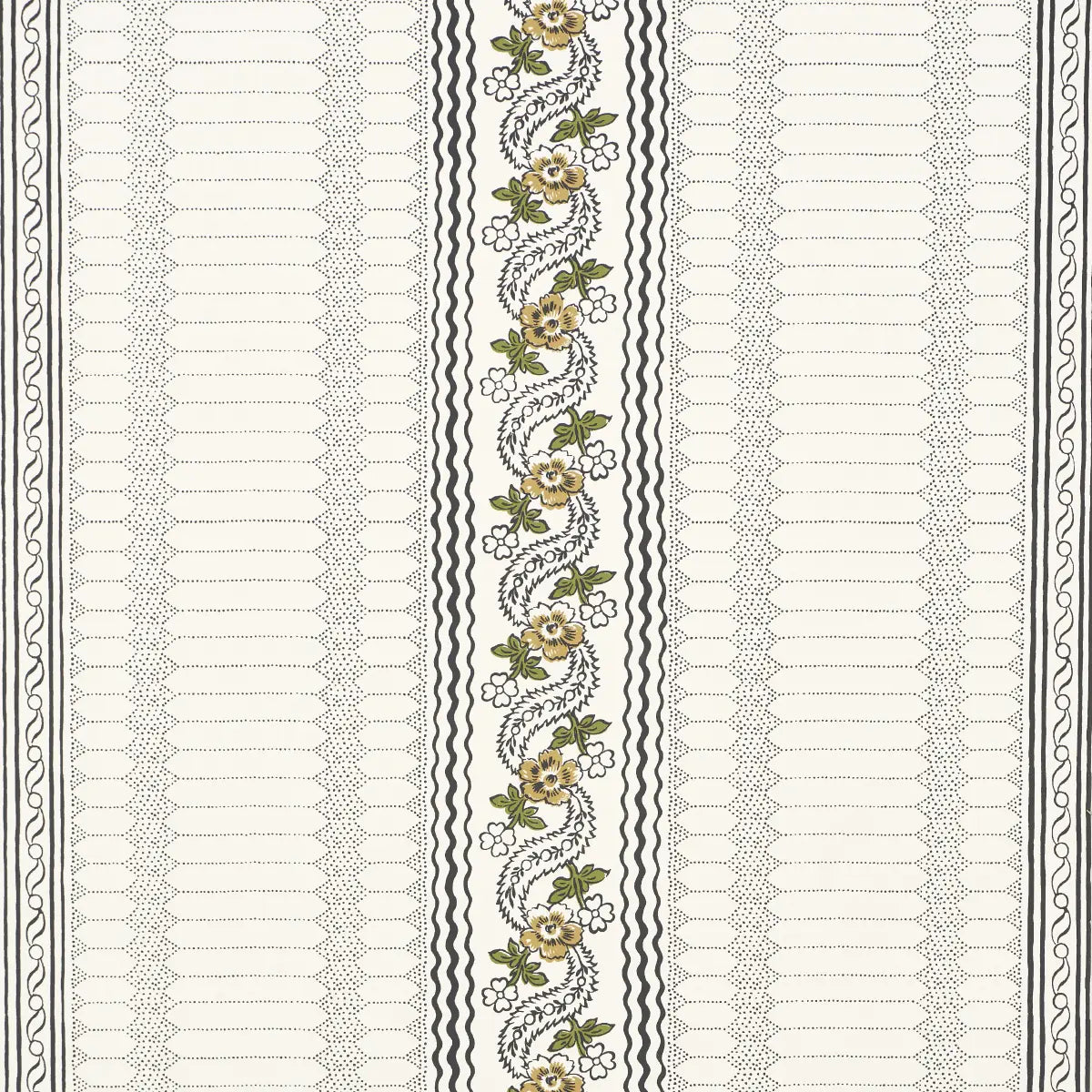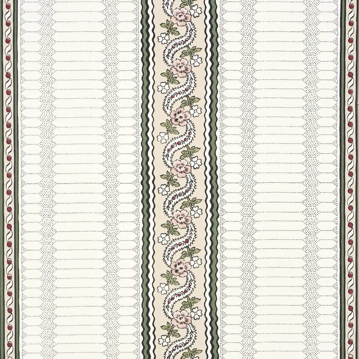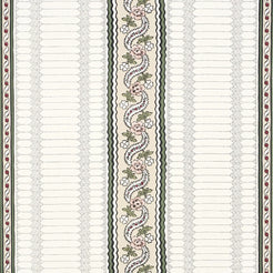Rita Konig was inspired by several antique textiles in her personal collection when she created Serena Stripe wallpaper, a timeless pattern and the companion to Serena Garland. Screen-printed on a flat paper ground with painstaking attention to detail, this sophisticated medium-scale design mixes beautifully with other patterns.