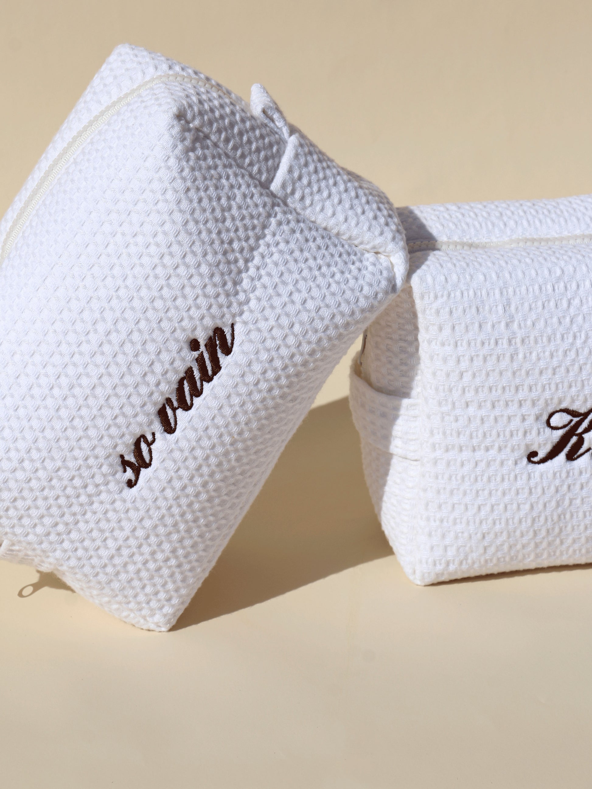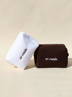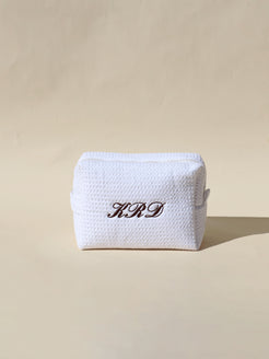 Elevate your everyday essentials with the Classic Monogram Waffle Pouch by Vanity & Co x Abbode. Designed from soft cotton waffle fabric with a chic, textured finish, this pouch brings effortless personalization to your routine. Sized at approximately 9″ x 7″ x 3.5″, it’s the perfect companion for storing your phone, wallet, keys and more—whether you’re headed out for errands, a quick coffee break, or a weekend getaway.