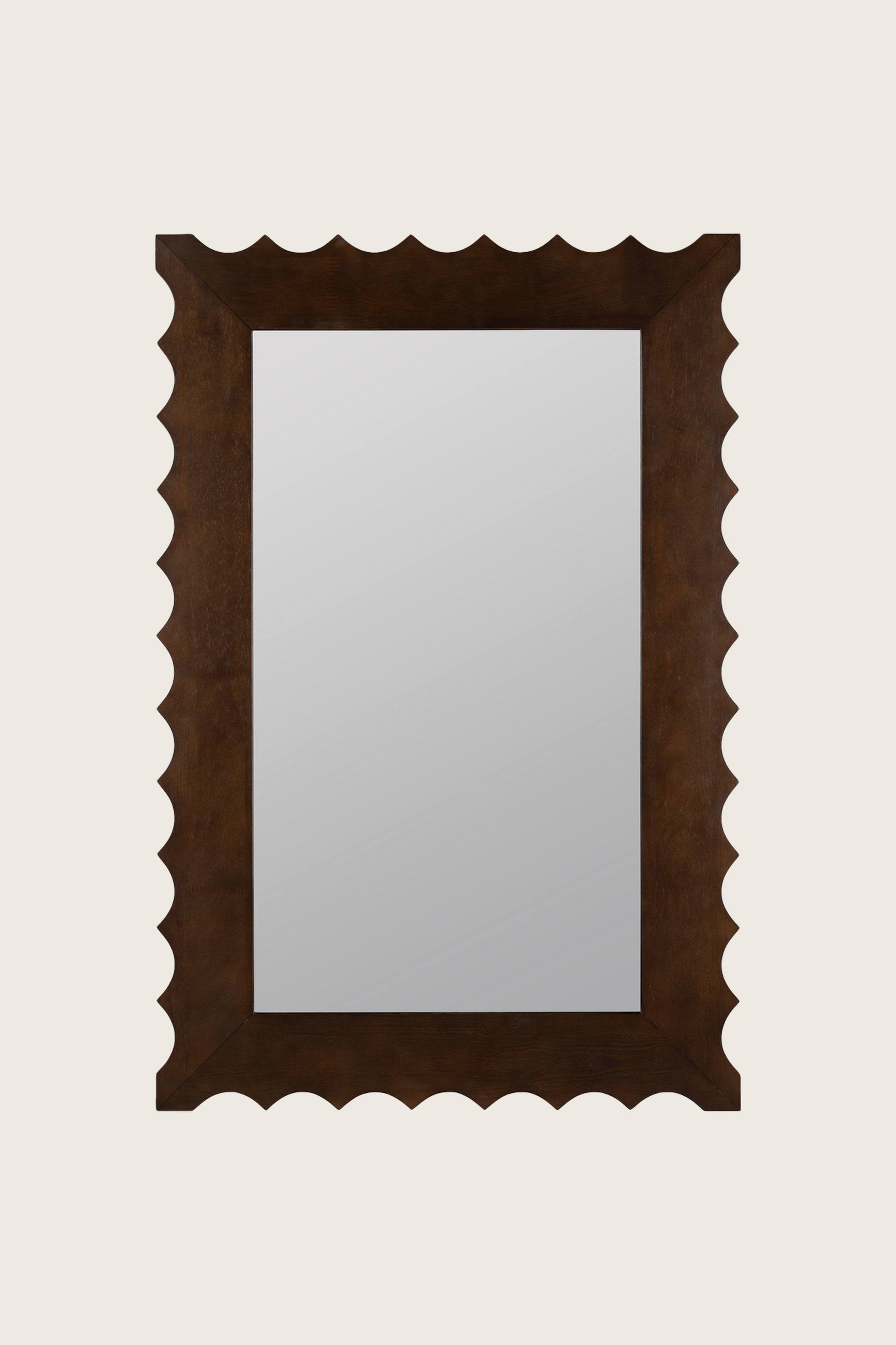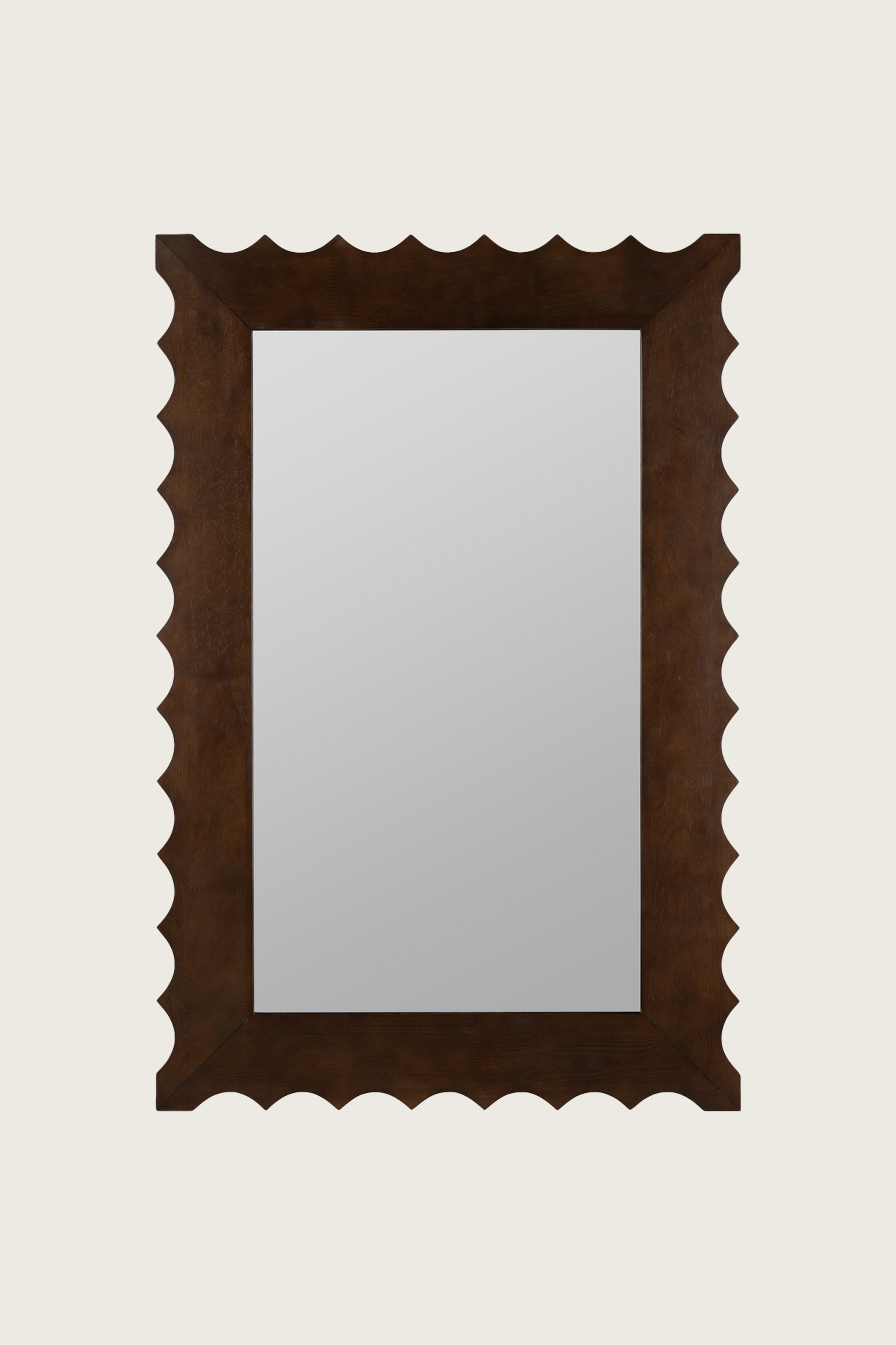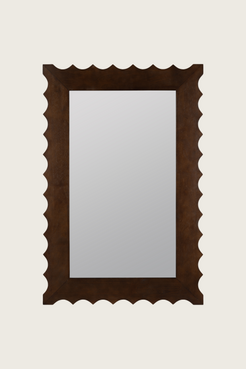 Bold yet beautifully balanced, the Sylvia Mirror is defined by its sculpted wood frame with rhythmic scalloped edges that bring texture and movement to a classic rectangular form. Finished in a rich, warm tone, the carved profile adds depth and artisanal character while remaining grounded and timeless. Equally at home in traditional, collected, or modern rustic spaces, Sylvia makes a striking statement above a dresser, console, or mantel—an artful blend of structure and softness that elevates the room without overpowering it.