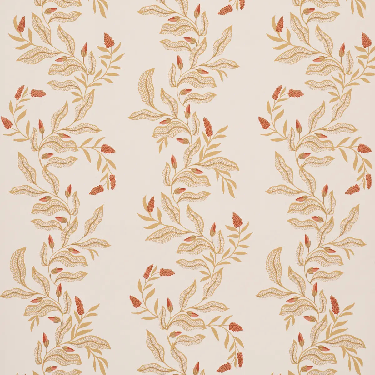 Created in collaboration with Parisian designer Laura Gonzalez, Vagary Vines features delicate winding branches, blooms, and buds that form loose, meandering stripes. A beautifully detailed rotary print inspired by traditional Indian motifs, this medium-scale wallpaper adds an elegant botanical flourish to a room. Also available as a fabric.