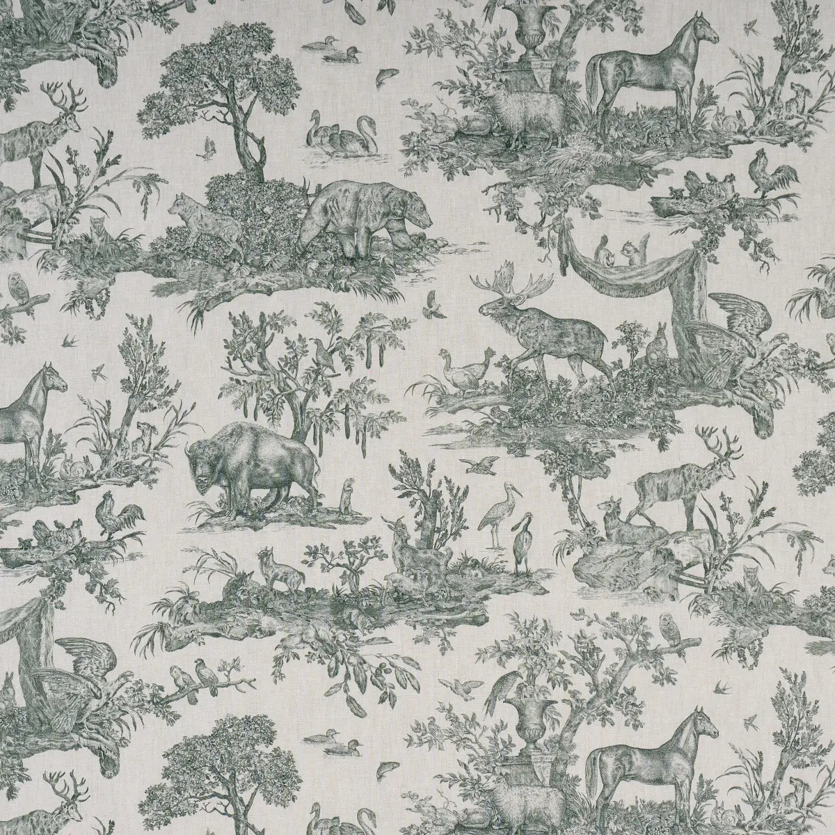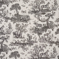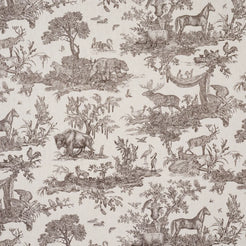 Inspired by an 18th-century Jean-Baptiste Huet toile in our archive and based on artwork hand-drawn in our studio, Western Toile is an imaginative fabric that evokes traditional etchings and pays homage to the history of North American animals. Printed on multipurpose linen, this unique medium-scale pattern features creatures that roam the wilderness and beloved domesticated species. It’s suitable for everything from window treatments to wall upholstery. Also available as a wallpaper.